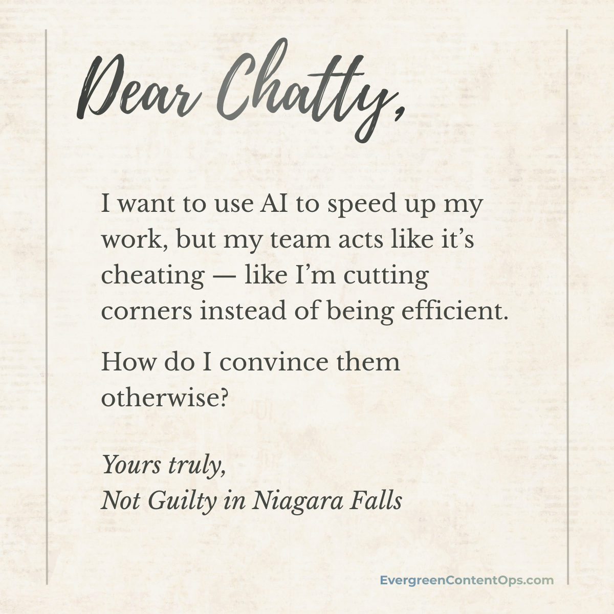 If using tools to work smarter is cheating, then so is using calculators, spellcheck, and dishwashers. AI isn’t cheating — it’s collaborating. Show your team the before and after: the clarity, the time saved, the improved output. Results tend to win arguments faster than explanations.